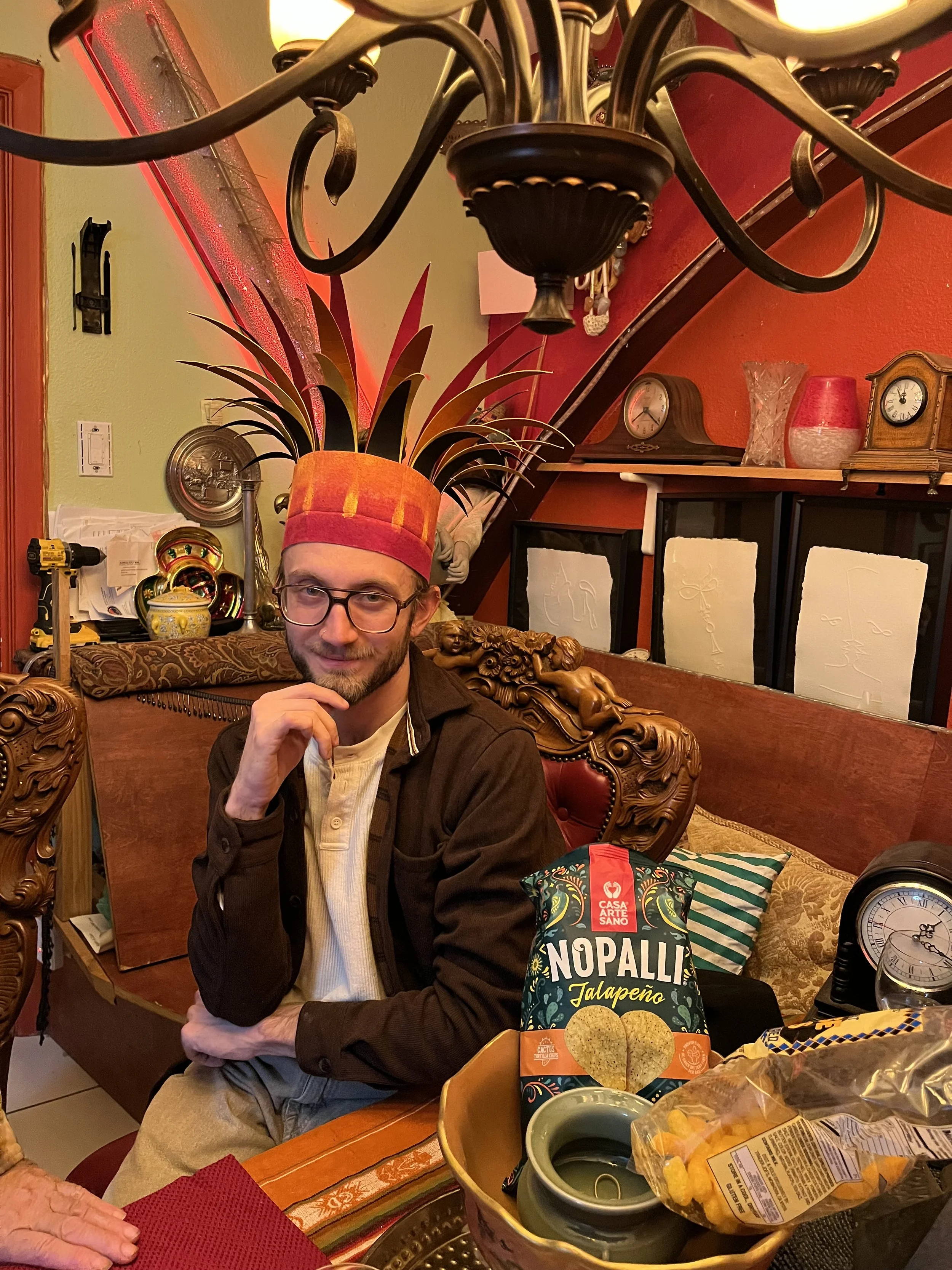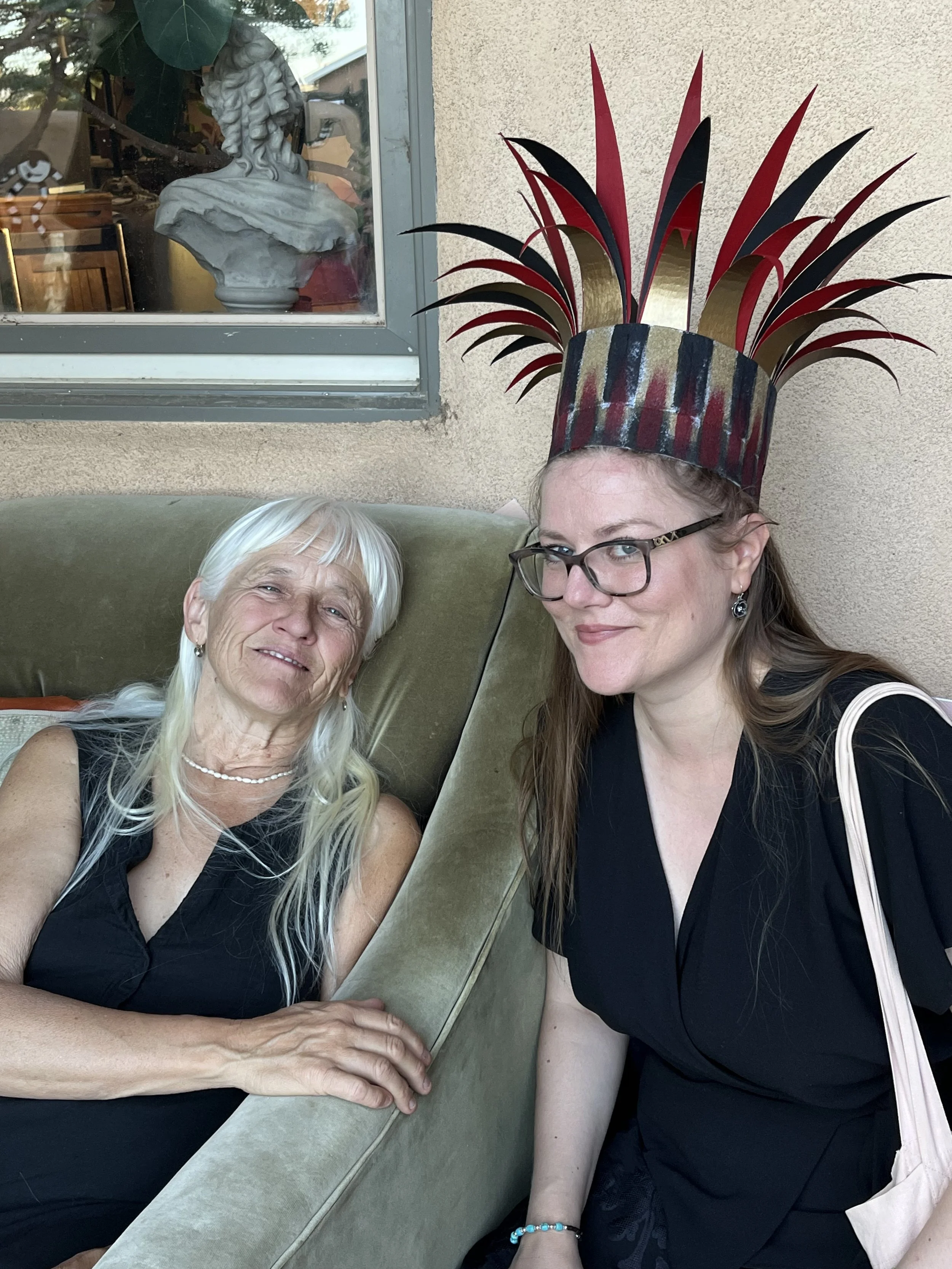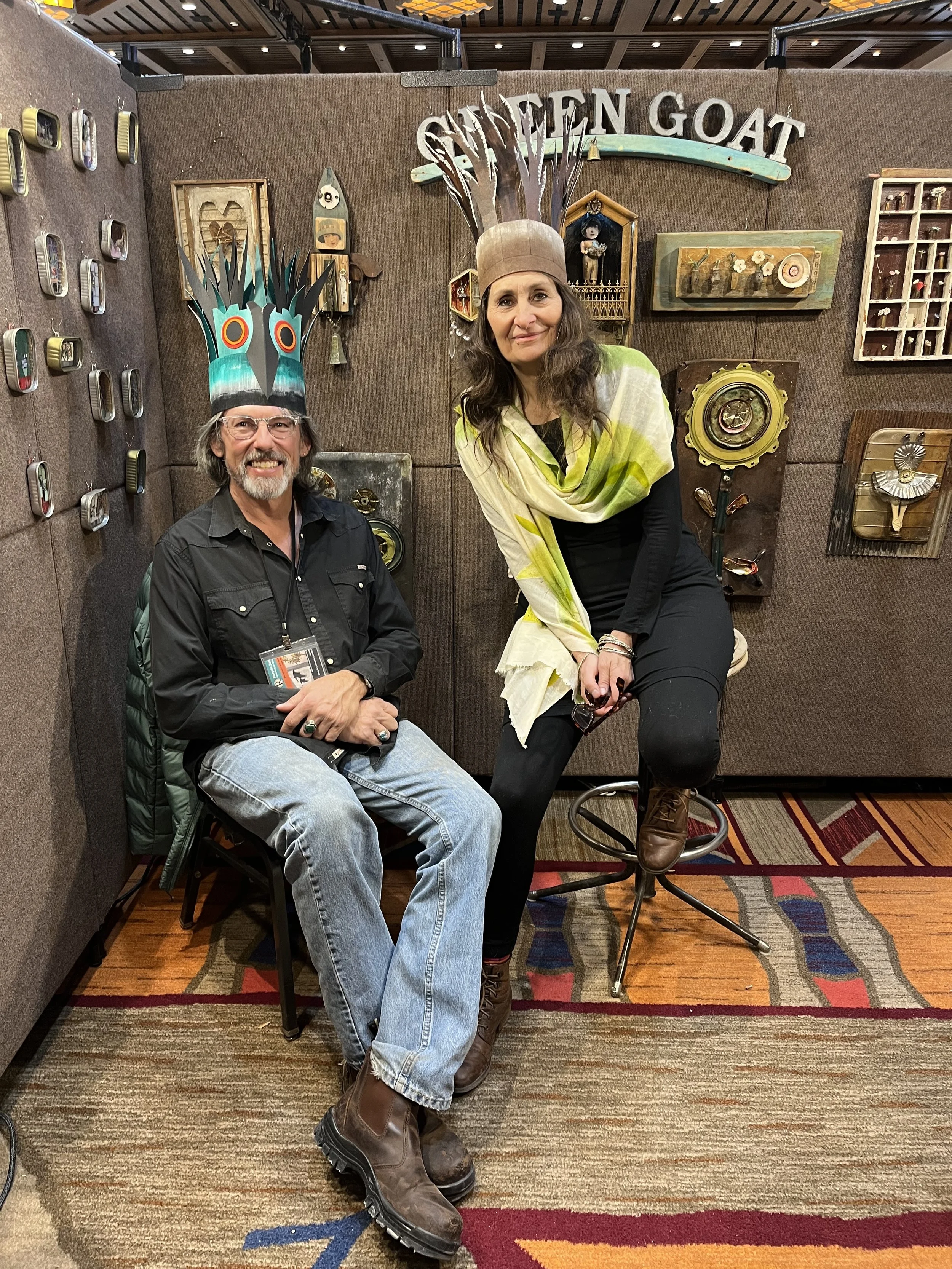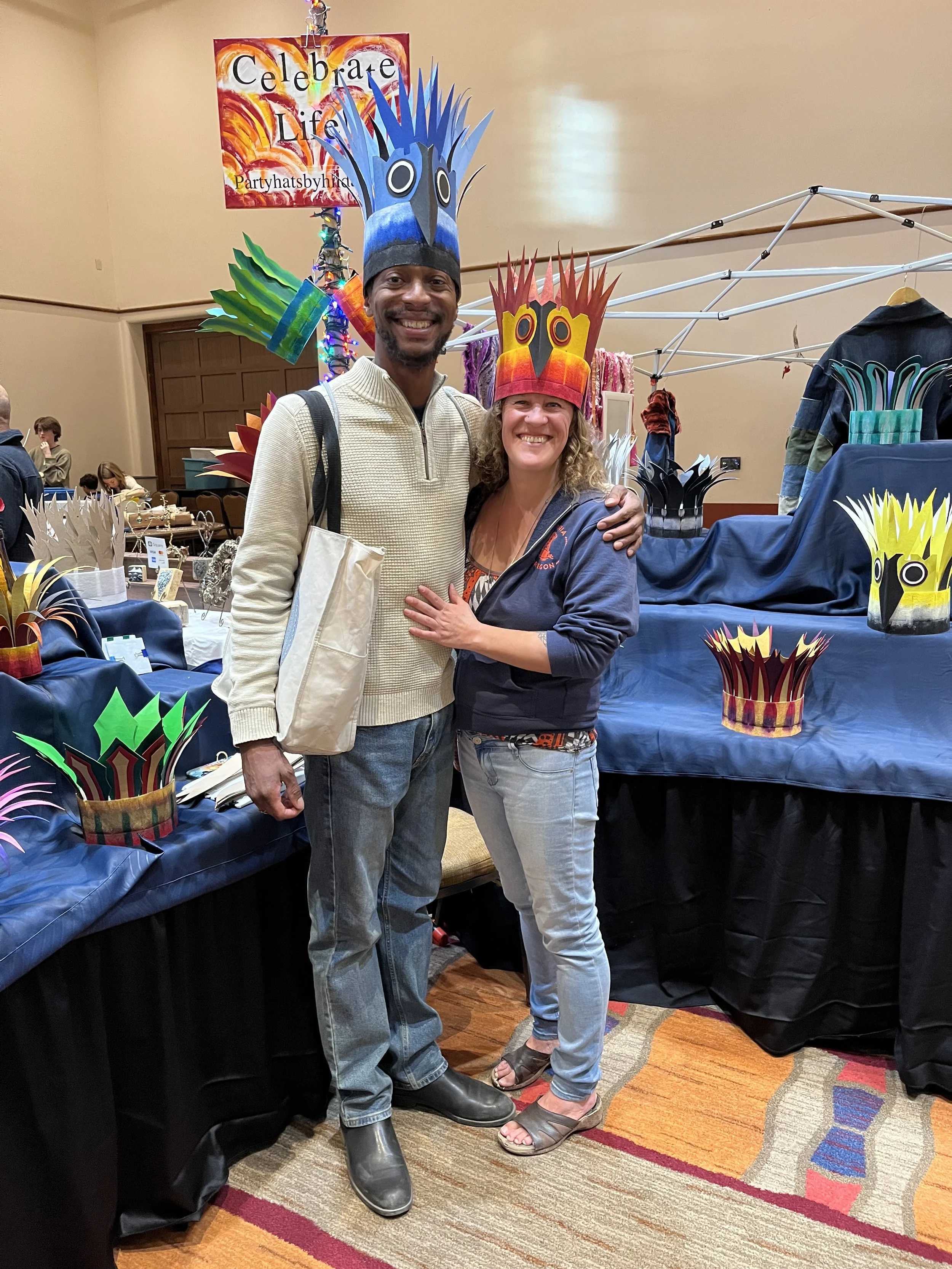 Hat bands are hand cut, sewn and painted on the outside. Hat attachments are also hand cut but painted on both sides. When all are dry, the attachments are inserted into the pockets that have been sewn onto the inside of the hat band. These attachments can then be removed and reversed for a totally different look!